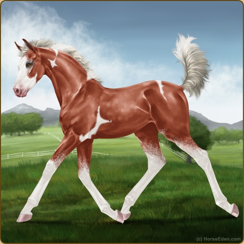 Color: Silver Blood Bay Tobiano Splash White Sabino