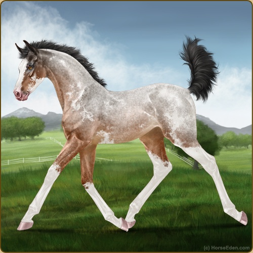 Color: Light Bay Roan Sabino Varnish Snowflake Appaloosa