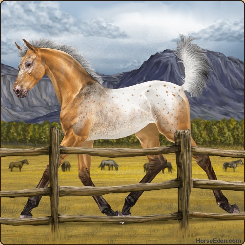 Color: Golden Bay Dun Rabicano Varnish Blanket Appaloosa