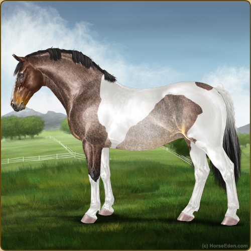 Color: Brown Roan Tobiano Rabicano
