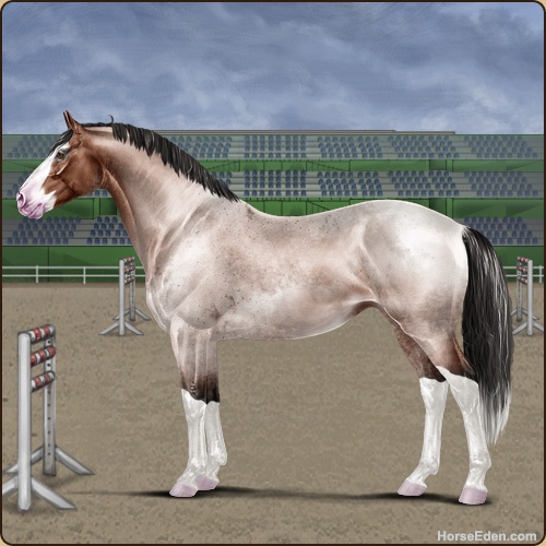 Color: Mahogany Bay Roan Splash White Sabino