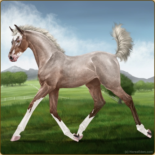Color: Silver Mahogany Bay Roan SabinoHorse Nbr: 42637565Breed: Sport PonySex: GeldingBirthdate: November 5, 2025Age: 1Birth Year: 196Height: 11.1 Hands