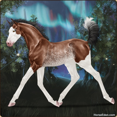 Color: Mahogany Bay Splash White Rabicano