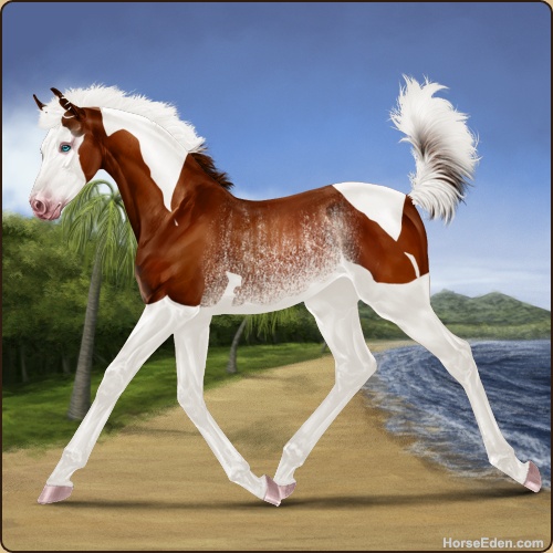Color: Chestnut Tobiano Splash White Rabicano Frame