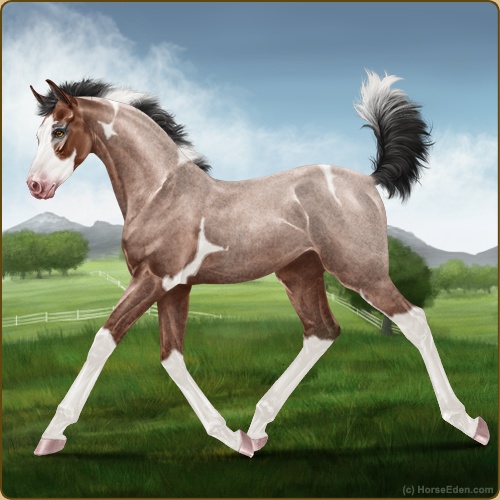 Color: Mahogany Bay Roan Tobiano Splash White
