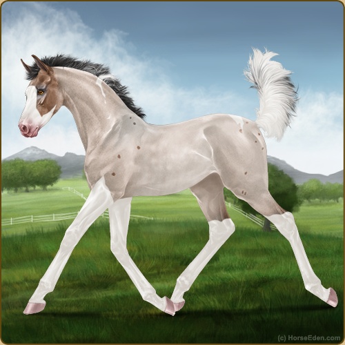 Color: Mahogany Bay Roan Dun Tobiano Splash White Rabicano