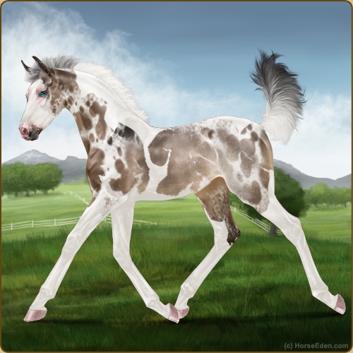 Color: Brown Dun Tobiano Splash White Rabicano