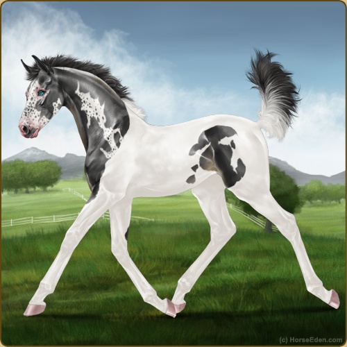 Color: Black Tobiano FrameHorse Nbr: 42668292Breed: Irish Sport HorseSex: FillyBirthdate: November 8, 2025Age: 1Birth Year: 196Height: 11.3 Hands