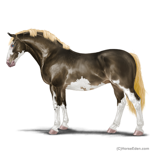 Color: Dark Flaxen Liver Chestnut Splash White Sabino