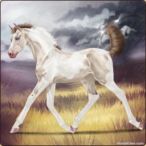 Color: Amber Creme Pearl Tobiano Splash White