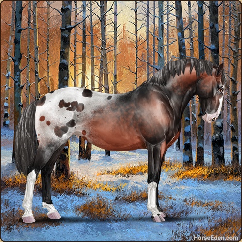 Color: Blood Bay Dun Blanket Appaloosa