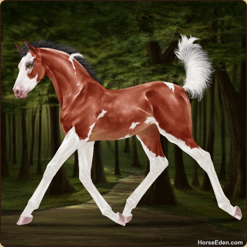 Color: Blood Bay Tobiano Splash White Sabino Varnish Appaloosa