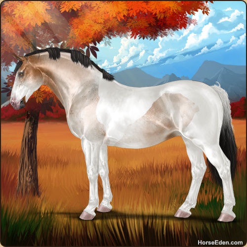 Color: Light Bay Roan Dun Tobiano Sabino