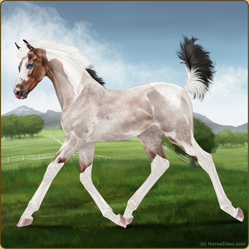 Color: Mahogany Bay Roan Tobiano Splash White