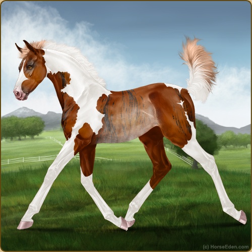 Color: Flaxen Chestnut Tobiano Rabicano Brindle