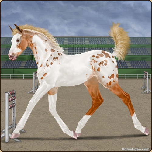 Color: Flaxen Chestnut Tobiano Frame Near Leopard Appaloosa