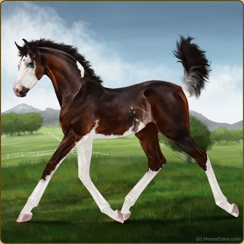 Color: Seal Brown Tobiano Splash White Rabicano