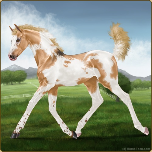 Color: Flaxen Red Dun Tobiano Frame