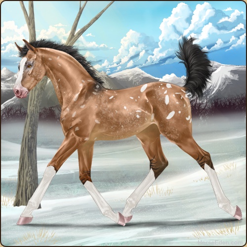 Color: Light Bay Dun Sabino Snowflake Appaloosa