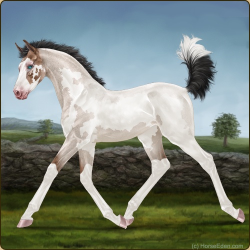 Color: Mahogany Bay Roan Dun Splash White Frame