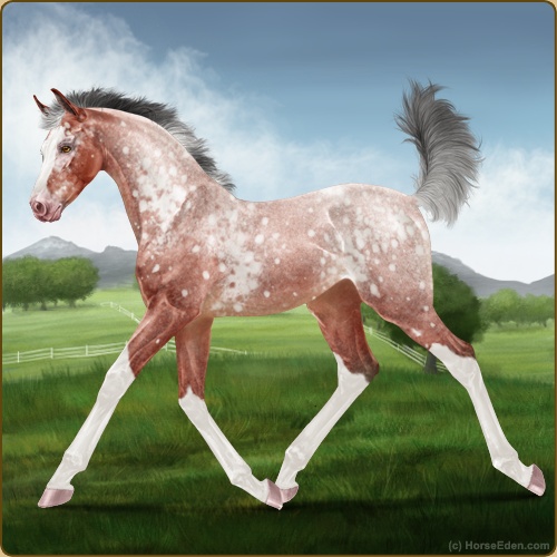Color: Blood Bay Roan Sabino Snowflake Appaloosa