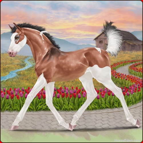 Color: Blood Bay Dun Tobiano Splash White
