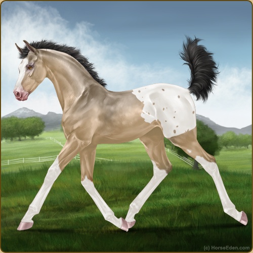 Color: Buckskin Sabino Varnish Blanket Appaloosa