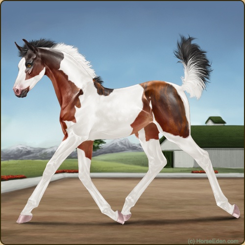 Color: Blood Bay Tobiano Sabino Brindle