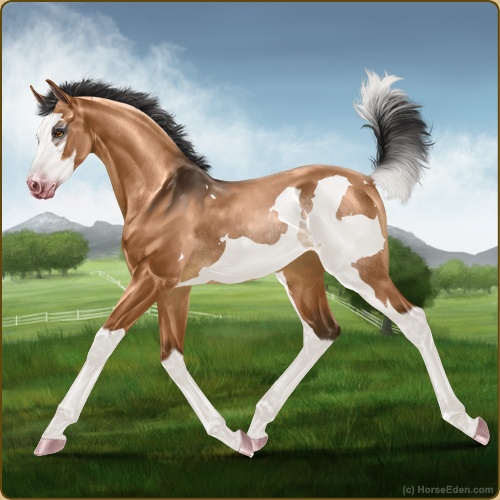 Color: Light Bay Dun Splash White Rabicano Frame