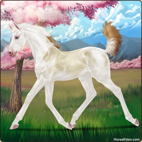 Color: Perlino Dun Tobiano Splash White Sabino