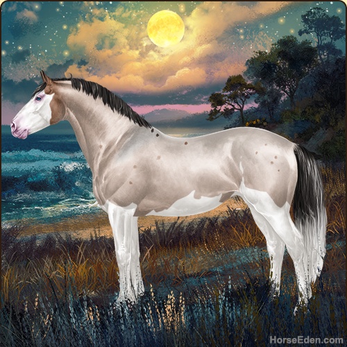 Color: Mahogany Bay Roan Dun Splash White Sabino