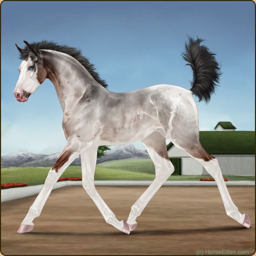 Color: Mahogany Bay Roan Splash White Sabino