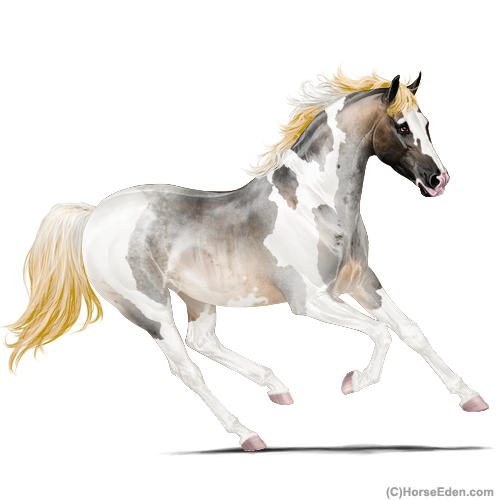Color: Flaxen Red Roan Dun Tobiano Sabino