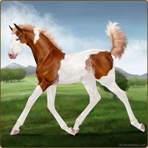 Color: Flaxen Chestnut Tobiano Splash White Rabicano