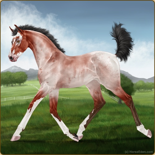 Color: Blood Bay Roan Sabino