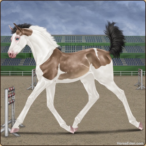Color: Brown Buckskin Tobiano Splash White