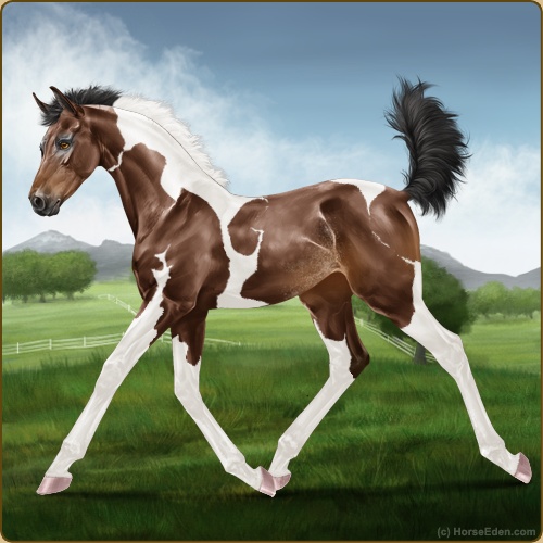 Color: Brown Tobiano Rabicano