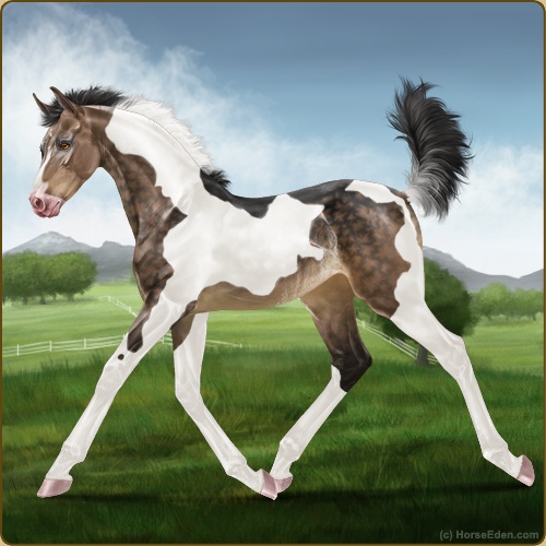 Color: Brown Dun Tobiano Splash White Rabicano