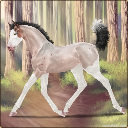 Color: Blood Bay Roan Dun Splash White