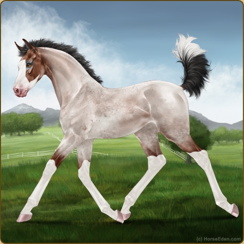 Color: Mahogany Bay Roan Splash White