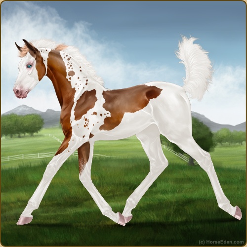 Color: Flaxen Chestnut Tobiano Splash White Sabino