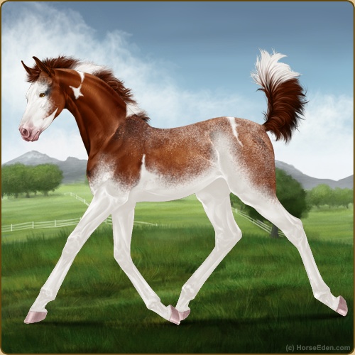 Color: Chestnut Tobiano Splash White Sabino Frost Appaloosa