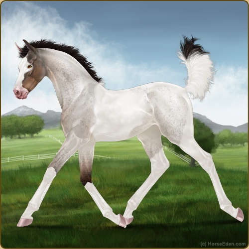 Color: Seal Brown Roan Dun Tobiano Sabino