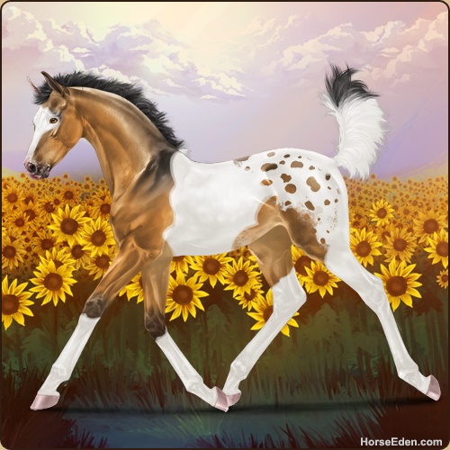 Color: Golden Bay Dun Tobiano Varnish Blanket Appaloosa