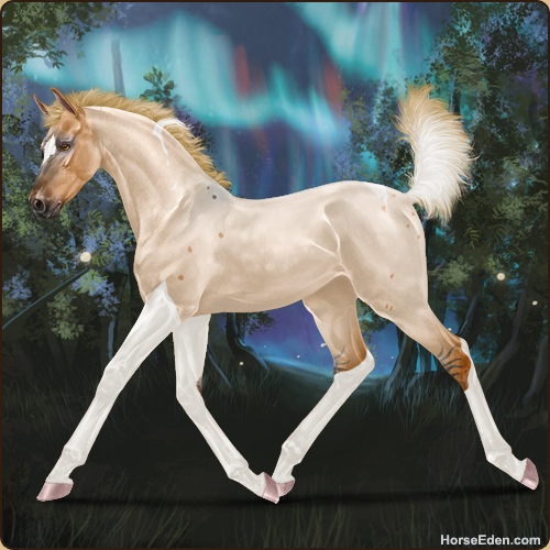 Color: Flaxen Red Roan Dun Tobiano