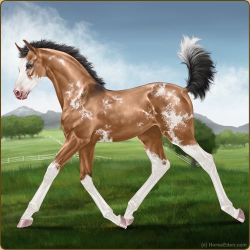 Color: Light Bay Dun Splash White Sabino