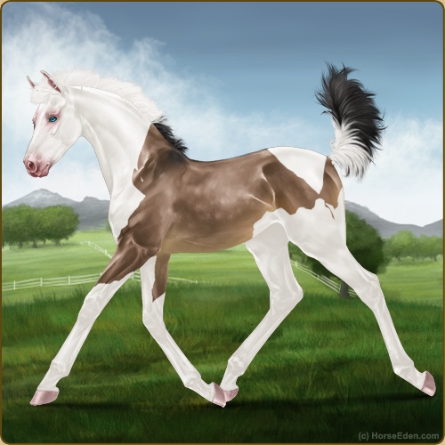 Color: Brown Dun Tobiano Splash White
