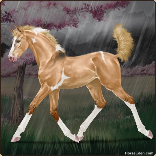 Color: Flaxen Red Dun Tobiano Splash White