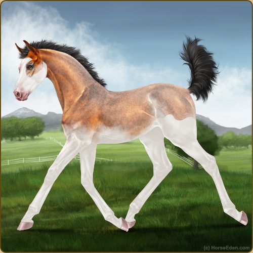 Color: Copper Bay Roan Splash White Sabino