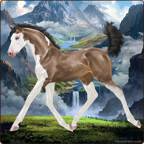 Color: Brown Buckskin Tobiano Splash White Sabino